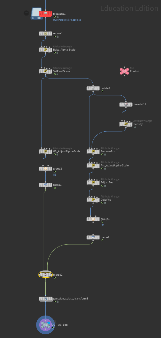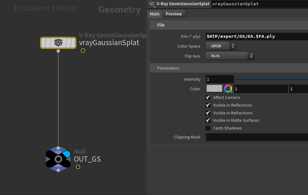 Read simulated Gaussian Splat data back in with V-Ray Gaussian Splat node to render with V-Ray