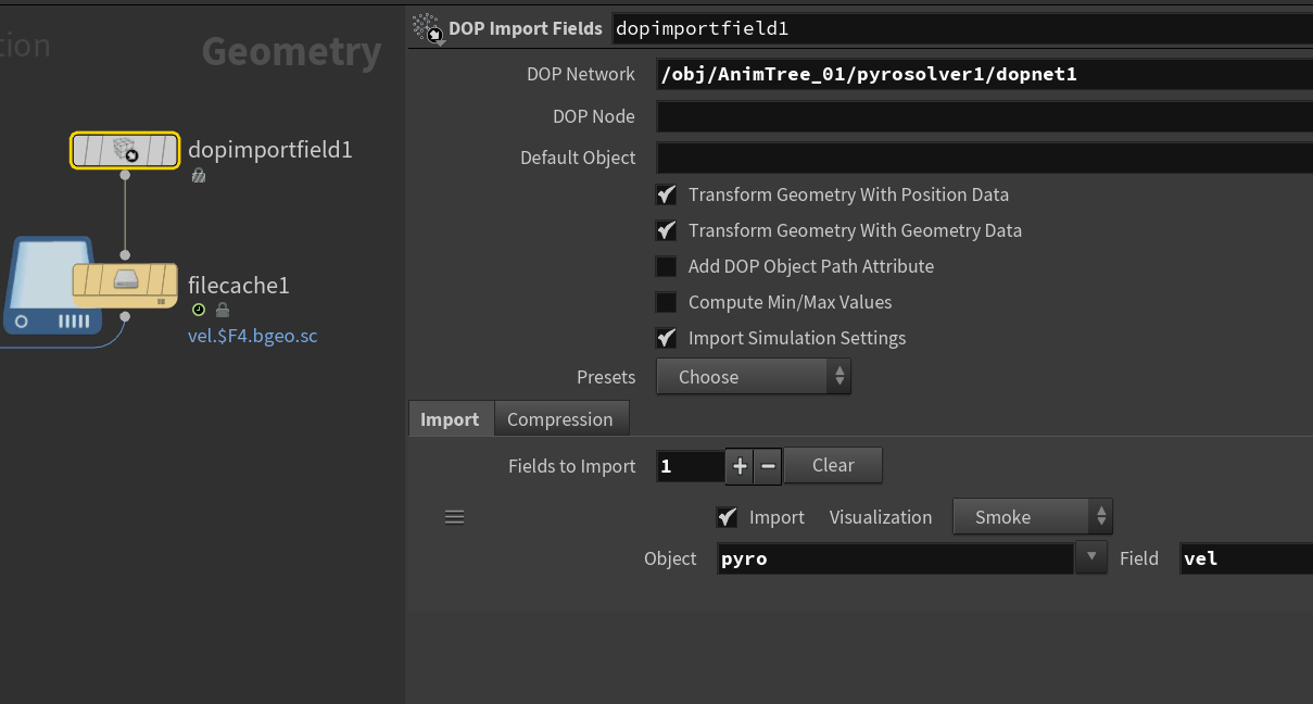 Use Dop Import Field node to select only velocity field