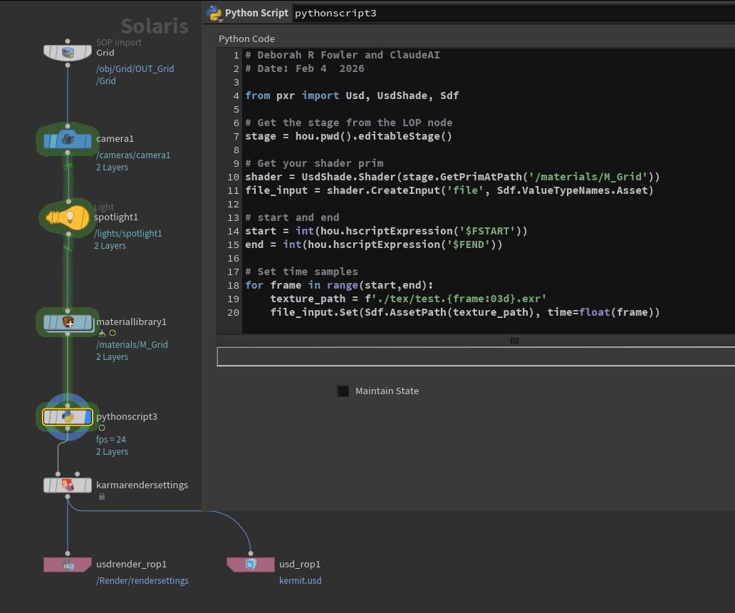 Credit: https://deborahrfowler.com/HoudiniResources/Overview-KarmaTexAnimated